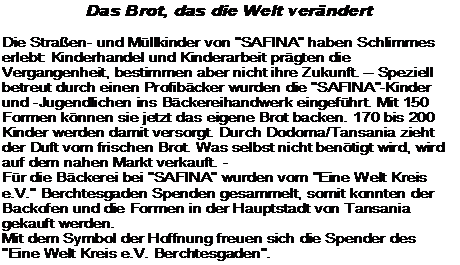 während ich diesen Rundbrief schreibe, regnet es!! Das mag für euch nichts Besonderes sein. Ich freue mich aber riesig, weil der letzte Regen eine Ewigkeit her ist. Bei uns ist Sommer und es ist sehr trocken. Dann möchte ich mich dafür entschuldigen, dass ich diesmal keine Bilder liefern kann. Wir hatten Ende Oktober Wahlen (unser Präsident wurde bestätigt) und normalerweise gibt um die Zeit herum immer irgendwelche Begleiterscheinungen wie z.B. schwaches Internet. Aber zu Erzählen habe ich dennoch Einiges. Danke für euer Interesse. Die Kinder Wir freuen uns, dass 12 Kinder die Grundschule abgeschlossen haben. Das ist in unserem Land schon viel wert und eine erste wichtige Hürde, die sie genommen haben – egal, wie gut sie abgeschlossen haben. Doch wir hoffen, dass sie auch die Zulassung für die Secondary School bekommen. Die Schule wird ja vom Staat finanziert, die Schüler müssen „nur“ Schulkleidung und Lernmaterial selbst finanzieren. Wir sind dankbar für R., der Herzprobleme hatte und dringend eine neue Herzklappe brauchte. Die sollte aus Italien kommen, kam aber wegen der Corona-Beschränkungen nicht ins Land. So wurde die OP ständig verschoben. Jetzt hat sie stattgefunden und er hat das gut überlebt. Betet, dass er die Erlaubnis erhält, seine Examen auf nächstes Jahr zu verschieben, so dass er den Secondary Abschluss erhält. Zwei unserer Kinder sind leider verstorben: Ein Kind wurde umgebracht nach einem Diebstahl. Selbstjustiz ist ein Problem in unserem Land. Ein Jugendlicher, der auf der Müllkippe lebte, ist krank geworden und dann auch gestorben. Singida Wir haben in Singida ein Haus, in dem bereits 13 Kinder ein Zuhause finden. Doch die Betreuer sind keine Erzieher mit Zertifikat. Das braucht man aber, um für so eine Arbeit die Genehmigung zu bekommen. Noch haben wir eine Genehmigung auf Zeit und suchen einen Erzieher / eine Erzieherin, die die passenden Papiere hat und in die Arbeit reinpasst. Es reicht, wenn man EINE solche Person in der Arbeit hat. (Bei uns auf dem Gelände ist das übrigens Nixon). Mein Auto Mein Auto ist so defekt, dass ich es nicht mehr fahren kann. Ich hoffe, „die sterbliche Hülle“ dennoch verkaufen zu können. Nun bin ich also ohne eigenes Verkehrsmittel und nutze eine der folgenden Möglichkeiten, um von A nach B zu kommen: Einer unserer Ehemaligen fährt Taxi. Das ist ein Isetta-ähnliches Dreirad, das man hier Pajadi nennt. Wenn ich mit ihm fahre, fahre ich sicher und er freut sich über die Einnahme. Ich könnte auch ein Piki Piki nutzen (Motorrad-Taxi). Da fahre ich aber nur mit Fahrern, die ich kenne, denn es ist ein recht unfallträchtiges Verkehrsmittel und ich habe in Kenia schon schlechte Erfahrungen damit Safina News Dodoma Andrea Hellemann P.O. BOX 1424 Dodoma Tanzania East Africa Welches ist das höchste Gebot von allen? … Du sollst den Herrn, deinen Gott, lieben von ganzem Herzen, von ganzer Seele, von ganzem Gemüt und mit all deiner Kraft. Markus 12,30 gemacht. Die Kinder auf meinem Gelände werden mit einem Mini-Bus gefahren. Da kann ich auch manchmal mitfahren oder ich bin sogar die Fahrerin, die eine erste „Ladung“ Kinder fährt und dann vom eigentlichen Fahrer abgelöst wird. Meine Gemeinde Meine Baptistengemeinde hat schon seit längerem einen Pastor, der aber nicht so genannt werden wollte. Nun war er doch bereit dazu und wurde letzten Sonntag eingesegnet. Die Gemeinde will ihn und es war eine schöne Feier. Corona Im Frühjahr waren alle hier – so wie auch bei euch – alarmiert und vorsichtig. Man trug Mundschutz, wusch sich häufig die Hände und hielt Abstand. Inzwischen sagt man, Corona sei vorbei. Mir selbst ist es auch ein Rätsel. Zu Beginn der Krise hatte ich mir schon Gedanken gemacht, was geschehen würde, wenn Leute an Beatmungsgeräte müssten – es gibt hier nämlich keine. Ich kann auch nicht behaupten, dass niemand an Corona gestorben wäre. Aber da wenig bis gar nicht getestet wird und Tote auch nicht obduziert werden, weiß man einfach nicht, ob jemand nun an Corona oder an etwas anderem gestorben ist. Eine (nicht christliche!) Freundin meinte: „Da hat Gott uns beschützt“. Inzwischen leben wir ohne Kontaktsperre, ohne Mundschutz und wir geben uns auch wieder die Hand. Da werde ich mich in Deutschland ordentlich umstellen müssen. Heimataufenthalt Diesmal werde ich nicht erst im Januar, sondern schon am 2.12. nach Deutschland fliegen. Leider muss ich dann erstmal für eine Woche in Quarantäne. Diese Zeit werde ich bei der DMG auf dem Buchenauerhof verbringen und dann auch noch einige Tage anhängen, um Dinge zu klären. Ca. am 17.12. komme ich dann nach Detmold, wo ja meine Heimatbasis ist. Mein offizieller Reisedienst fängt im Januar an. D.h. noch weiß ich gar nicht, wie der unter CoronaBedingungen aussehen kann. Da warte ich mal ab, was die DMG mir rät. Meldet euch bitte bei mir, wenn ihr grundsätzlich Interesse an einem Besuch habt. Der Quarantäne sehe ich mit gemischten Gefühlen entgegen. Ich bin wirklich nicht jemand, der sich freiwillig in ein Zimmer einschließt… Aber manche von euch haben das ja auch schon hinter sich. Arbeitserlaubnis Während meiner Zeit in Deutschland läuft meine Arbeitserlaubnis in Tansania aus und meine SafinaKollegen müssen eine neue für mich beantragen. Betet, dass es keine Komplikationen gibt.